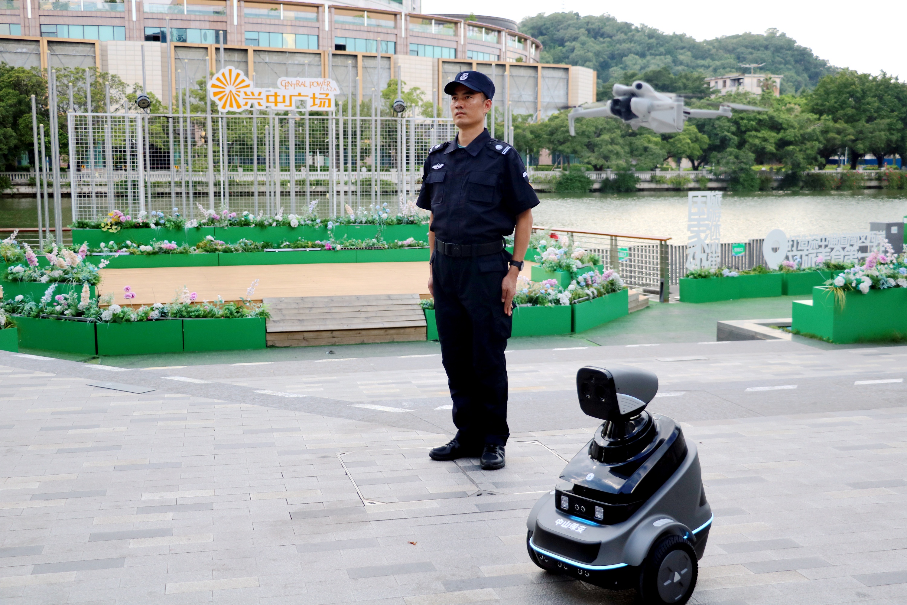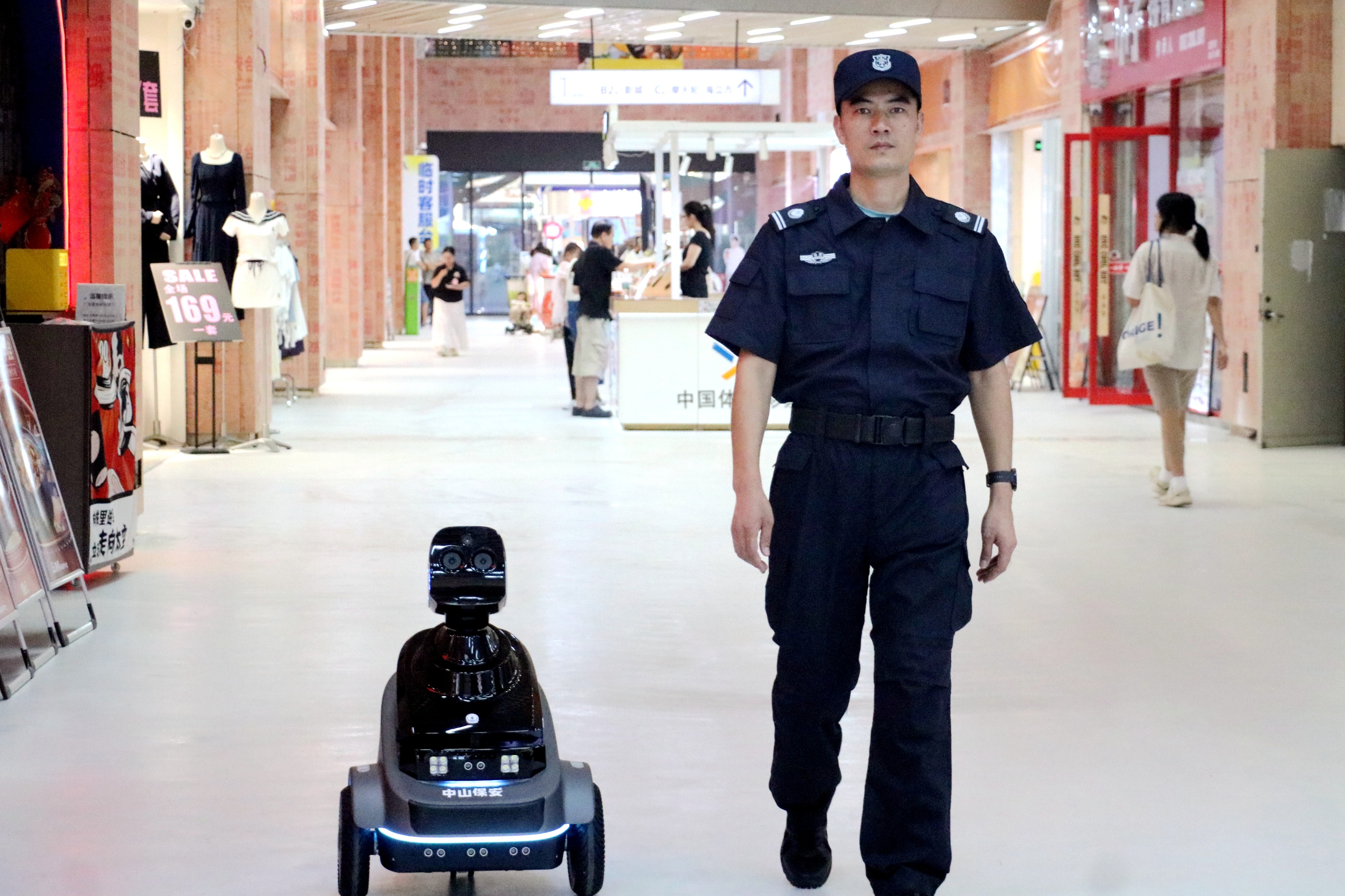 人机协同护平安!中山保安开启“机器人 + 保安” 联合巡逻新模式