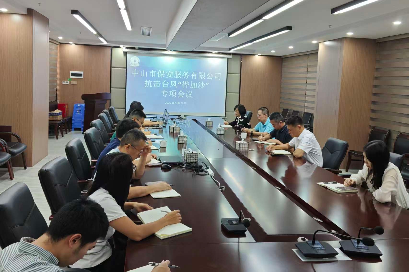 随着台风 “桦加沙” 逼近,风雨预警持续升级,安全防范工作刻不容缓。中山市保安服务有限公司迅速进入 “战时状态”,从管理层到一线岗位全员联动,以“与风雨赛跑” 的节奏落实各项防范措施,用高效行动为人员安全、财产安全筑起 “铜墙铁壁”。