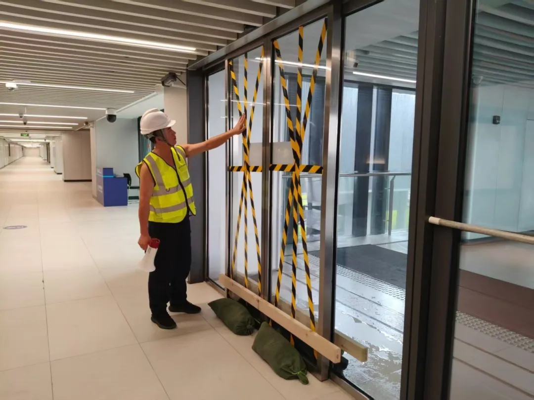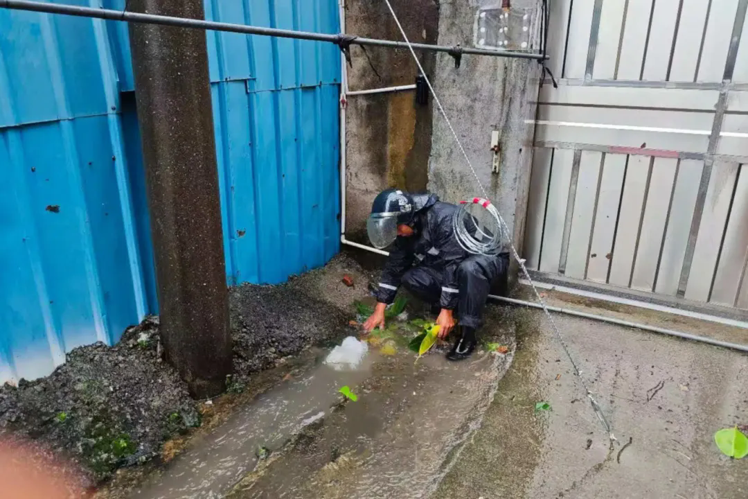 9月23日18时至24日,保安员512人次在岗,严格执行值班制度;他们拿着巡检设备,一遍遍检查网点门窗是否牢固、排水口有没有堵塞、电路开关是否安全,确保隐患第一时间被排除。台风过境,他们清理树枝、杂物,为明天复工复产做好准备。