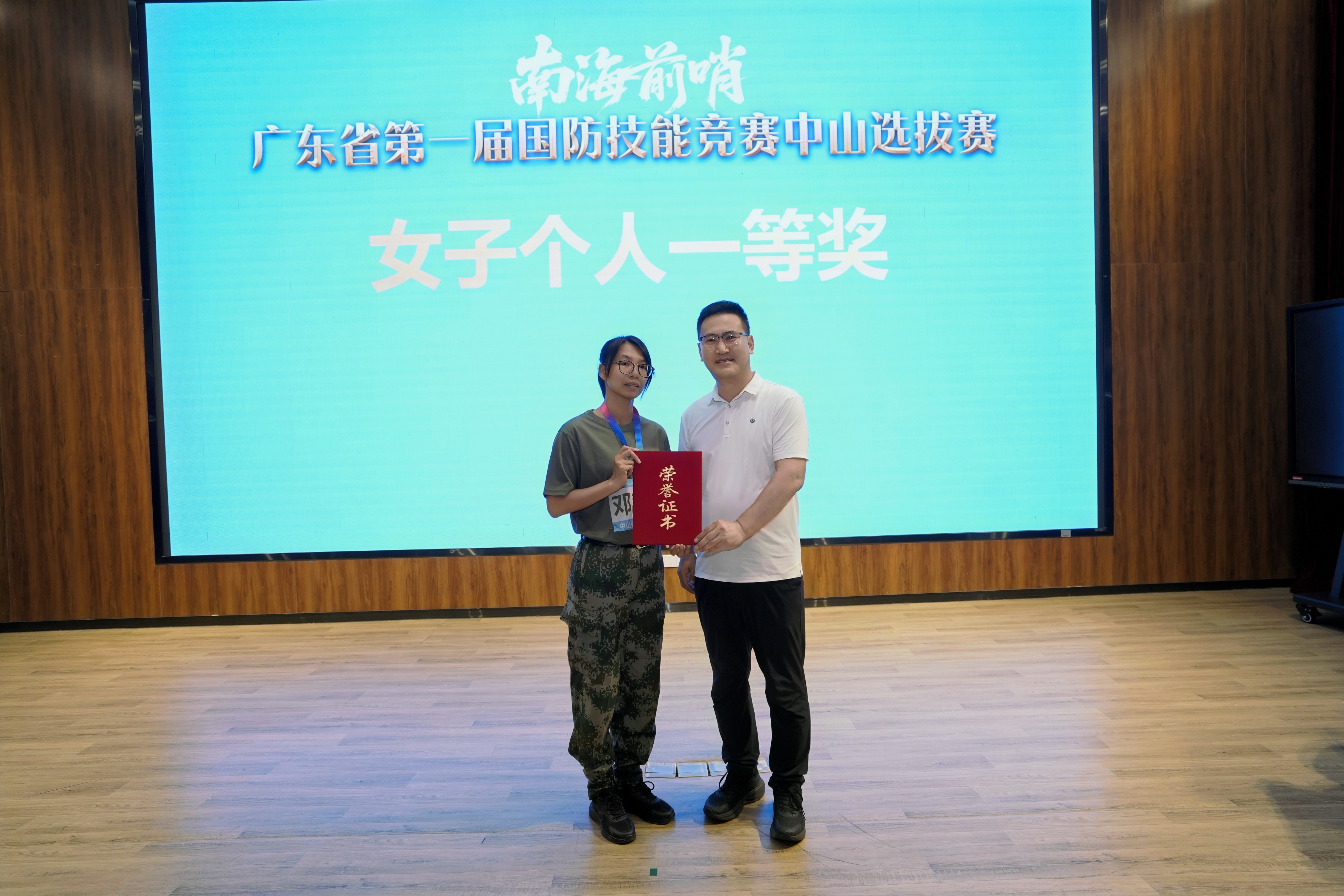 为纪念中国人民抗日战争暨世界反法西斯战争胜利80周年,深化全民国防教育,10月12日,由市委宣传部、市退役军人事务局、市国资委、市总工会、市工商联等单位联合主办,中山文旅集团承办的“南海前哨”广东省第一届国防技能竞赛中山选拔赛在中山市永安中学田径场圆满落幕。我司选派员工邓欢玉、钟国作为中山兴中集团有限公司代表队成员参赛并取得女子组个人一等奖、男子组个人二等奖的佳绩。