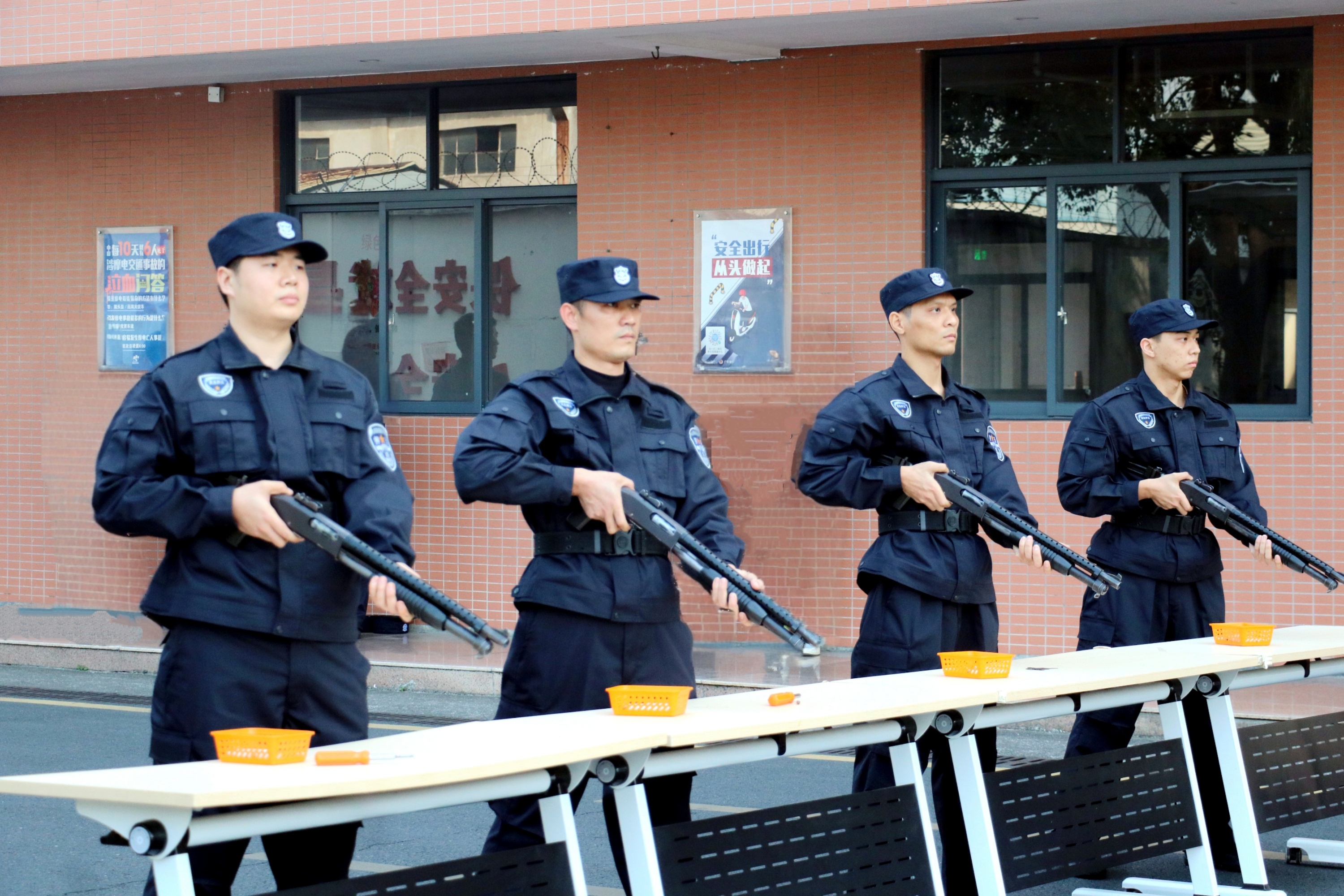 防暴枪实操环节气氛严肃,队员们手持97式防暴枪,熟练完成弹匣拆卸、枪膛检查、部件分解与组装等全流程操作。动作流畅精准、眼神专注坚定,既展现了日常训练的扎实功底,也彰显了对安全责任的敬畏,为关键时刻守护物资安全提供坚实底气。