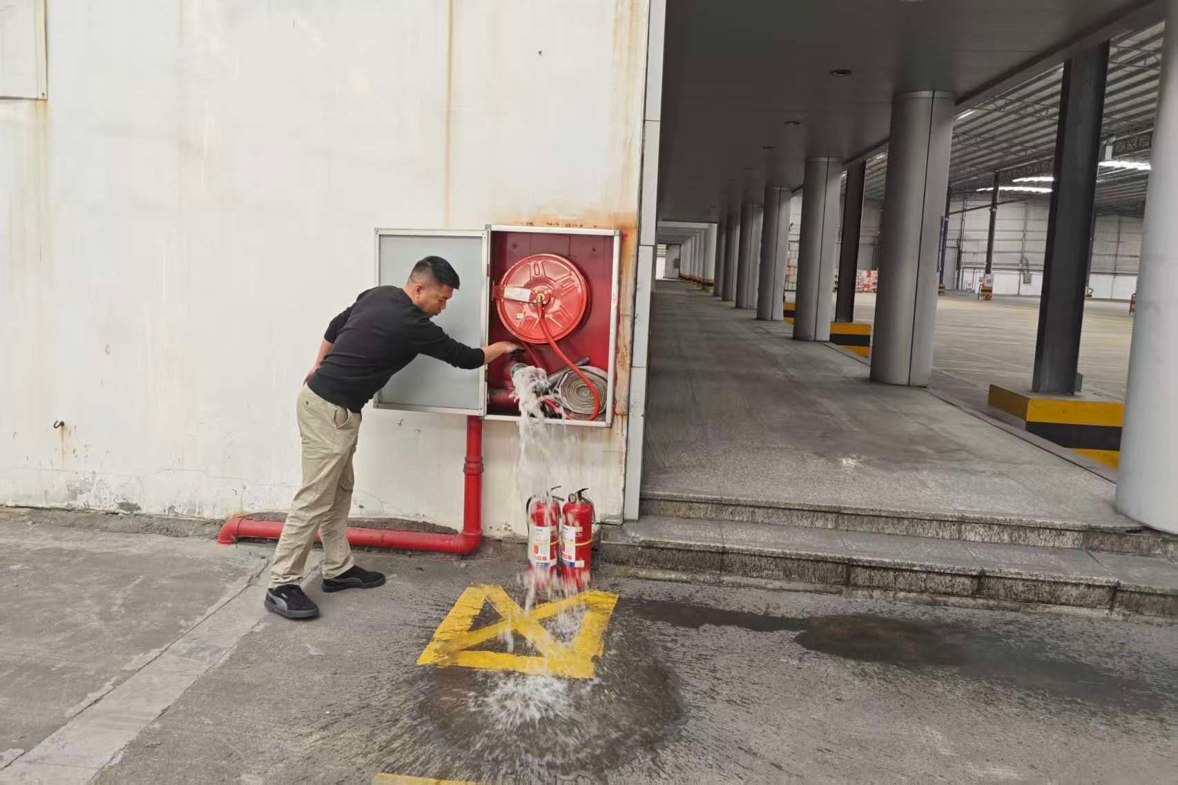 检查组带队检查消防栓设施